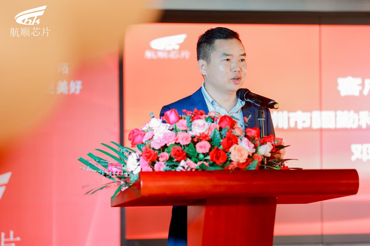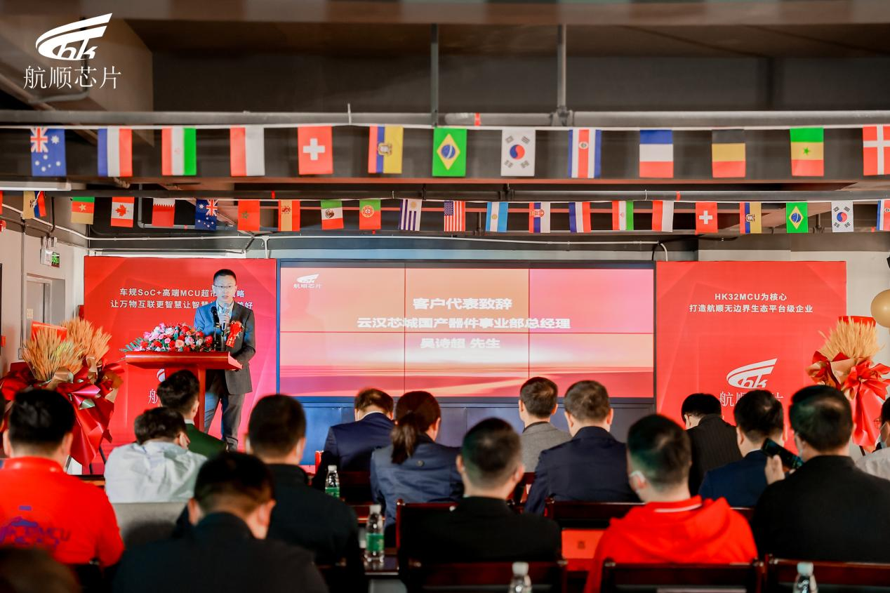 客户代表固勤科技邓福和副总经理、云汉芯城国产器件事业部吴诗超副总经理发表讲话,表示未来一起携手努力,紧跟金年会官方体育登录入口的发展步伐,发扬奋斗精神,共同推动半导体、国产MCU事业的发展!